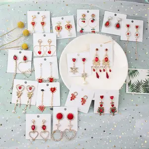 2019 새로운 핫 세일 20 스타일 레드 패션 한국어 우아한 기하학 매달려 귀걸이 여성을위한 귀여운 펜던트 Mujer 쥬얼리