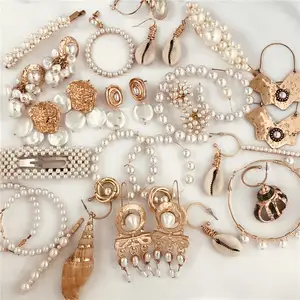 Fashionsnoops 여성을위한 새로운 바다 쉘 펜던트 귀걸이 골드 문 귀걸이 결혼식 파티 진주 기하학적 보석 선물