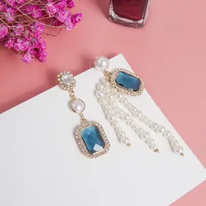 2019 새로운 크리스탈 진주 술 귀걸이 여성 긴 단락 기하학적 인 펜던트 귀걸이 웨딩 패션 쥬얼리 쥬얼리 선물
