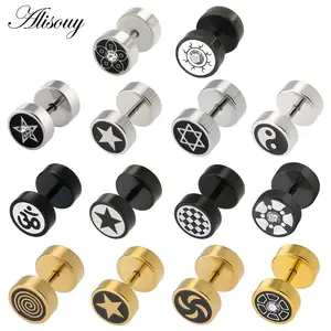 Alisouy 패션 남자 블랙 스틸 316L 스테인레스 스틸 귀 스터드 귀걸이 6/8/10mm 바벨 펑크 고딕 피어싱 쥬얼리 남성용