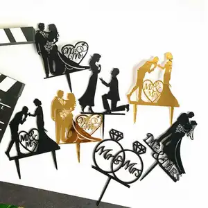 웨딩 케이크 토퍼 신부 신랑 미스터 부인 웨딩 장식 아크릴 블랙 골드 케이크 토퍼 결혼 파티 용품 성인 호의