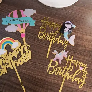 1PCs 유니콘 케이크 토퍼 아크릴 인어 생일 축하 케이크 토퍼 베이비 샤워 케이크 플래그 맞춤 케이크 장식