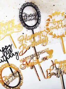 골드 실버 블랙 아크릴 손으로 생일 축하 케이크 토퍼 디저트 장식 생일 파티 사랑스러운 선물을 작성
