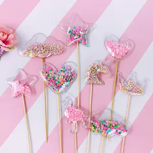 블링 페어리 pvc 케이크 토퍼 유니콘 러브 크라운 클라우드 반짝이 플라밍고 컵케익 토퍼 웨딩 생일 파티 케이크 장식