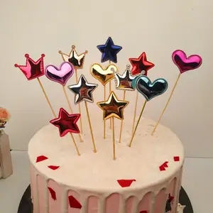 5 개/몫 귀여운 크라운 스타 케이크 토퍼 생일 사랑스러운 케이크 플래그 여자를위한 베이비 샤워 Diy 파티 케이크 장식 액세서리