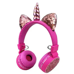 어린이 헤드폰 유니콘 헤드폰 무선 블루투스 헤드셋 스테레오 음악 성인 소년 소녀 선물을위한 stretchable 만화 이어폰