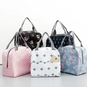 기능성 패턴 쿨러 도시락 상자 휴대용 절연 캔버스 점심 가방 여성을위한 열 음식 피크닉 점심 가방 어린이