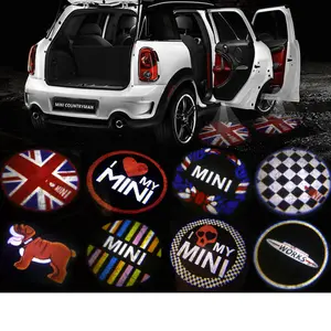 2 pcs 자동차 그림자 문 빛 만화 무선 레이저 프로젝터 로고 미니 쿠퍼에 대 한 led 환영 램프 자동차 스타일링 액세서리