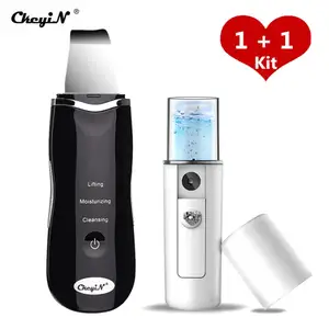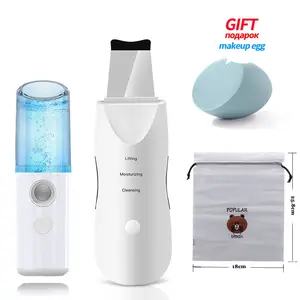 초음파 나노 이온 스킨 스크러버 클리너 페이스 리프팅 필링 추출기 딥 클리닝 뷰티 디바이스 + 페이셜 스티머 스프레이 어 44