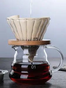 500ML/300ML 나무 브래킷 유리 커피 Dripper 및 냄비 세트 Japness 스타일 V60 유리 커피 필터 재사용 가능한 커피 필터