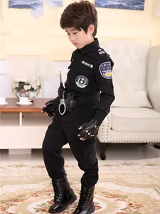 경찰관 유니폼 십대 어린이 코스프레 의상 파티 짧은 소매 소년 소녀 의류 세트 전투 전술 경찰 복장 어린이
