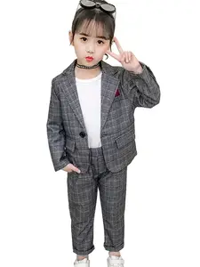 십대 소녀 의류 세트 가을 소녀 격자 무늬 양복 재킷 + 바지 학교 Tracksuit 소녀 의류 아동 의류 8 10 년