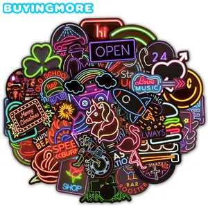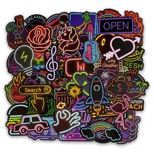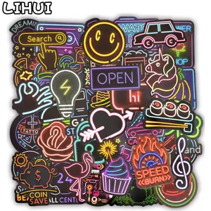 50 PCS 네온 라이트 스티커 애니메이션 아이콘 동물 귀여운 데칼 스티커 선물 어린이 노트북 가방 기타 냉장고 자전거 자동차