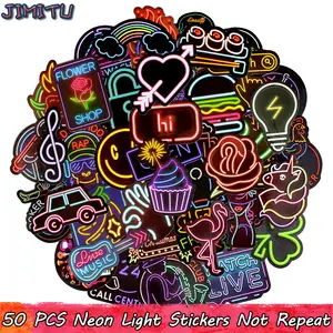 50 pc 어린이를위한 멋진 네온 스티커 장난감 자전거 전화 가방 기타 범퍼 스케이트 보드 배낭 JDM 낙서 방수 스티커