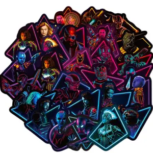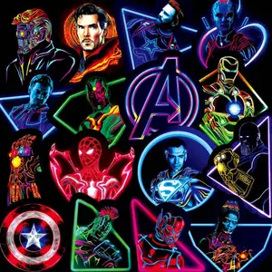 50 pcs 네온 혼합 마블 영웅 avengers 스티커 스케이트 보드 냉장고 전화 기타 오토바이화물 pvc 방수 농담 스티커