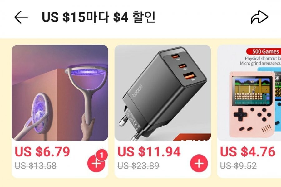 🙌 15$ 이상 4$ 할인 상품 추천(앱만가능)> 90' 모기채, 레트로게임기, toocki gan 65w충전기)