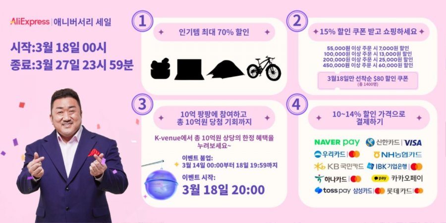 알리익스프레스의 14살 생일을 기념하여 10억원 상당의 쿠폰을 팡팡! 쏩니다!