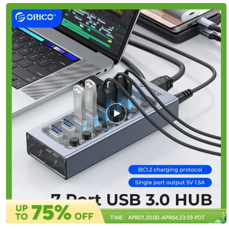 Orico USB3.0 7포트 허브 $18.21