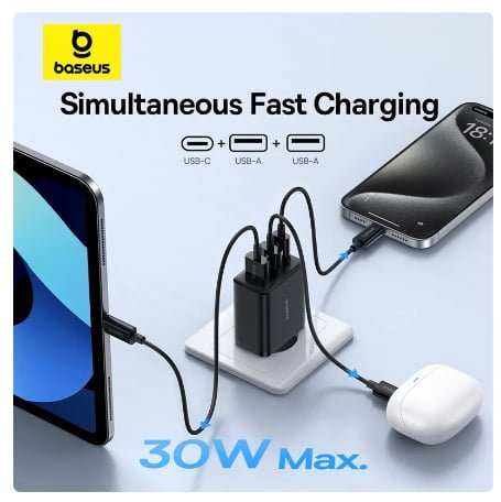 제품 바로가기 -> Baseus 30W USB 충전기 QC3.0 PD3.0 C 타입 PD 고속 충전, 3 포트 고속 휴대폰 충전기, 아이폰 15 14 13 프로 맥스 샤오미 삼성용
