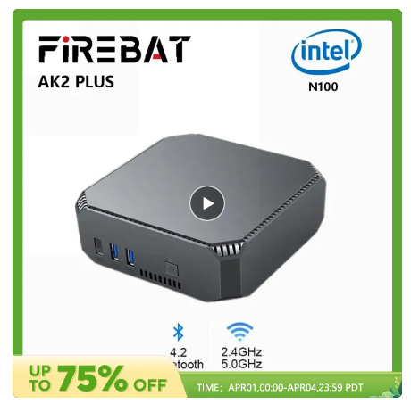 제품 바로가기 -> FIREBAT AK2 플러스 미니 PC, 인텔 N100, 듀얼 밴드, WiFi5, BT4.2, 데스크탑 게이밍 컴퓨터, 미니 PC 게이머, 16GB, 512GB