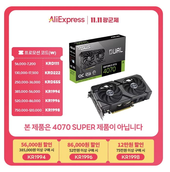 앱상품바로가기 → [RTX4070] [SUPER 아님] ASUS DUAL GeForce RTX 4070 O12G EVO OC D6X 12GB 인텍앤컴퍼니 [SUPER 아님]