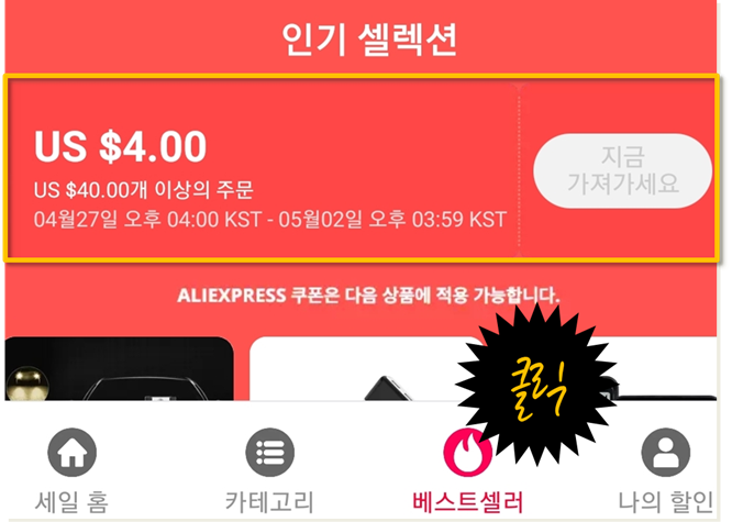 우선, 놓치지 말아야 할 셀렉트 쿠폰과 스토어 쿠폰